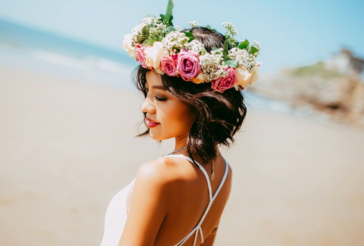 Pelo corto con corona de flores